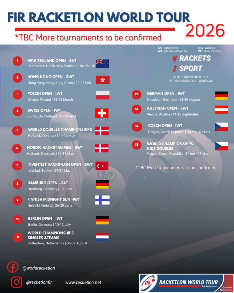 The FIR World Tour Committee is very excited to make the first announcement of the FIR World Tour 2026. We will add further tournaments, especially in the 2nd half of 2026, later.
